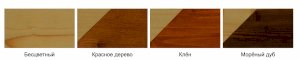 Цвета на выбор: бесцветный, клён, орех, красное дерево, морёный дуб, жженое дерево.