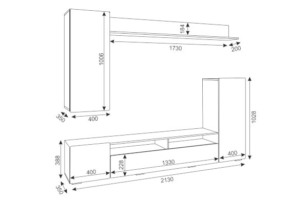 Ширина месте под ТВ: 1330 мм