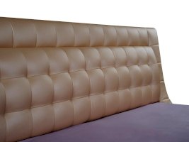 Одного взгляда на эту кровать достаточно, чтобы понять: перед вами настоящее произведение искусства. Плавные природные линии корпуса, расслабляют, моментально настраивают на отдых, манят словно магнит: «Ляг, полежи, ощути легкость, покачайся на волнах безмятежности». Высокое мягкое изголовье с аккуратным геометрическим орнаментом лишь подчеркивает ее изящество и стать, сопротивляться этому бьющему в глаза обаянию становится совсем невозможно.
